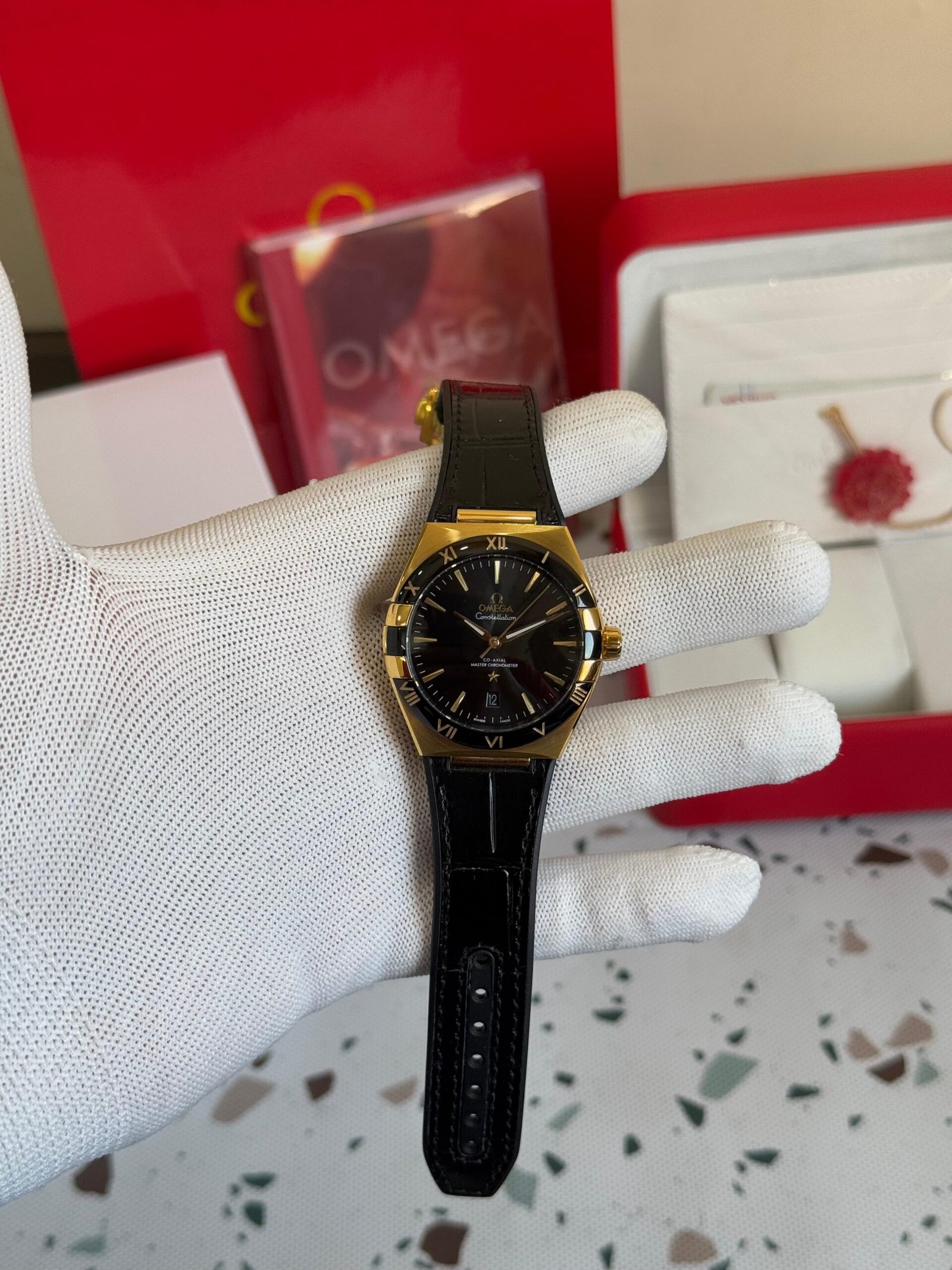 Omega constellation co axial master chronometer 41 mm Rose gold black